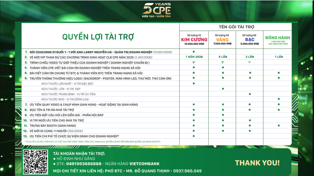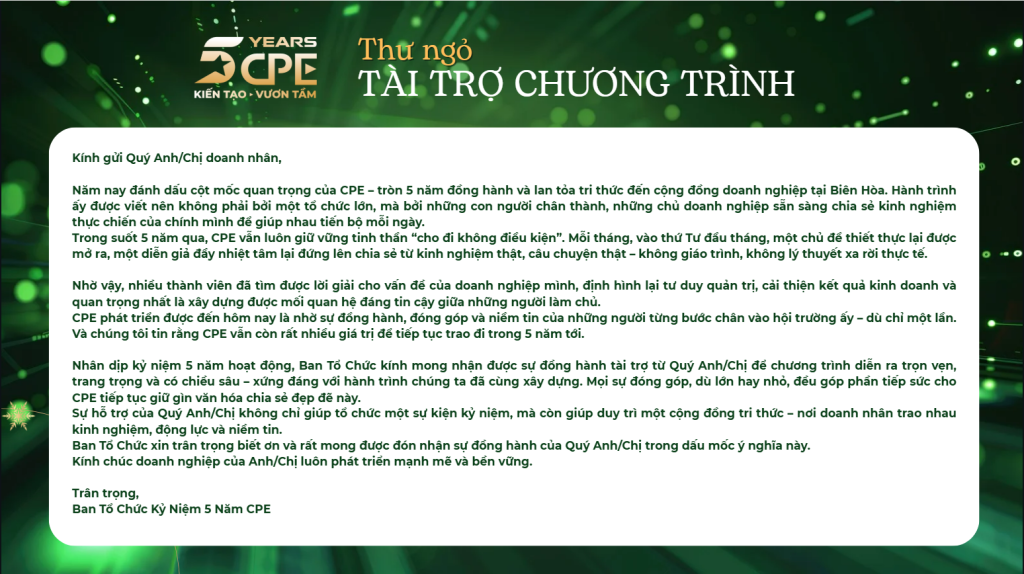 THƯ MỜI TÀI TRỢ SỰ KIỆN 5 NĂM THÀNH LẬP CPE Club