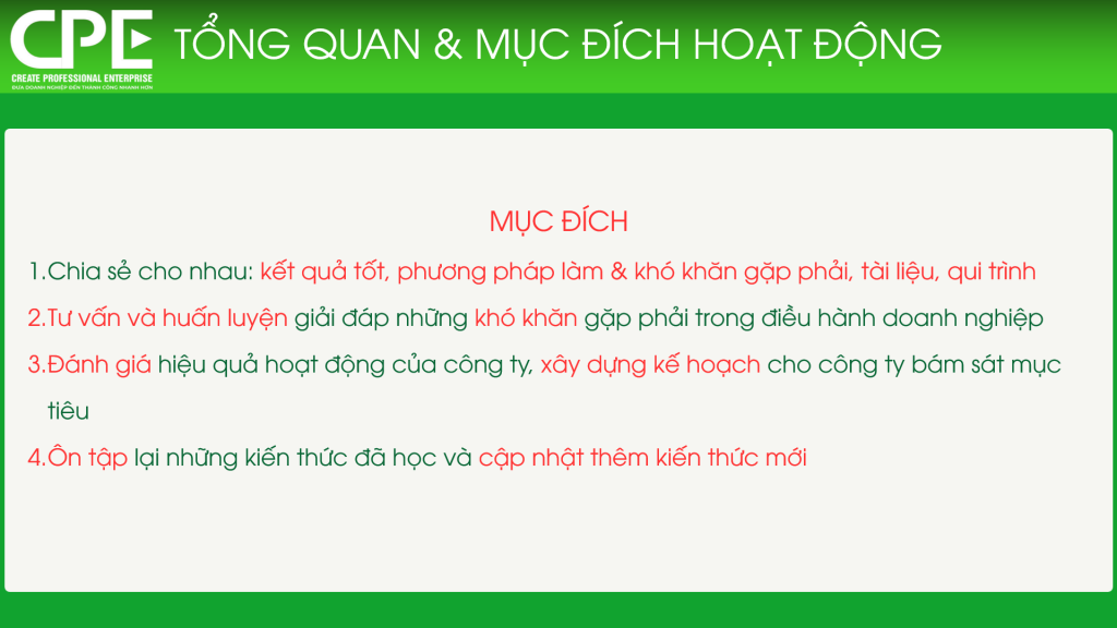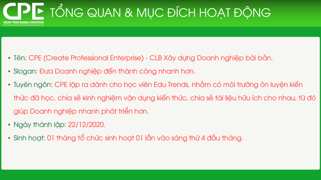 CÂU LẠC BỘ CPE – XÂY DỰNG DOANH NGHIỆP BÀI BẢN